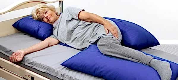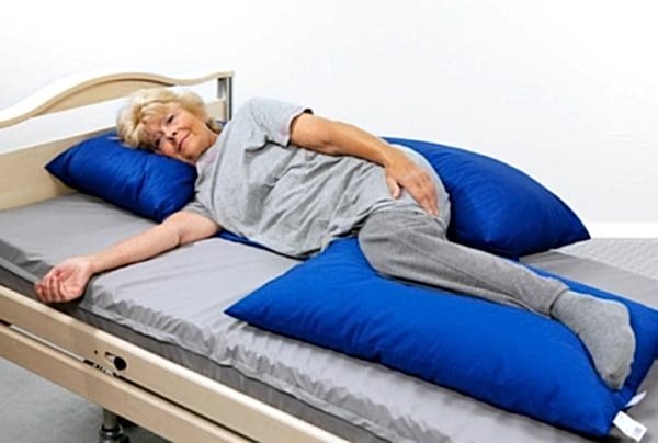 - На живот.Убирают подушку из-под изголовья, разгибают нижнюю руку больного в локте, прижав её к туловищу по всей длине и подложив кисть под бедро. Сиделка берёт подопечного за нижнюю часть бедра и за плечо, а потом «переваливает» его через его же руку на живот, на подготовленную PinUp подушку или валик.